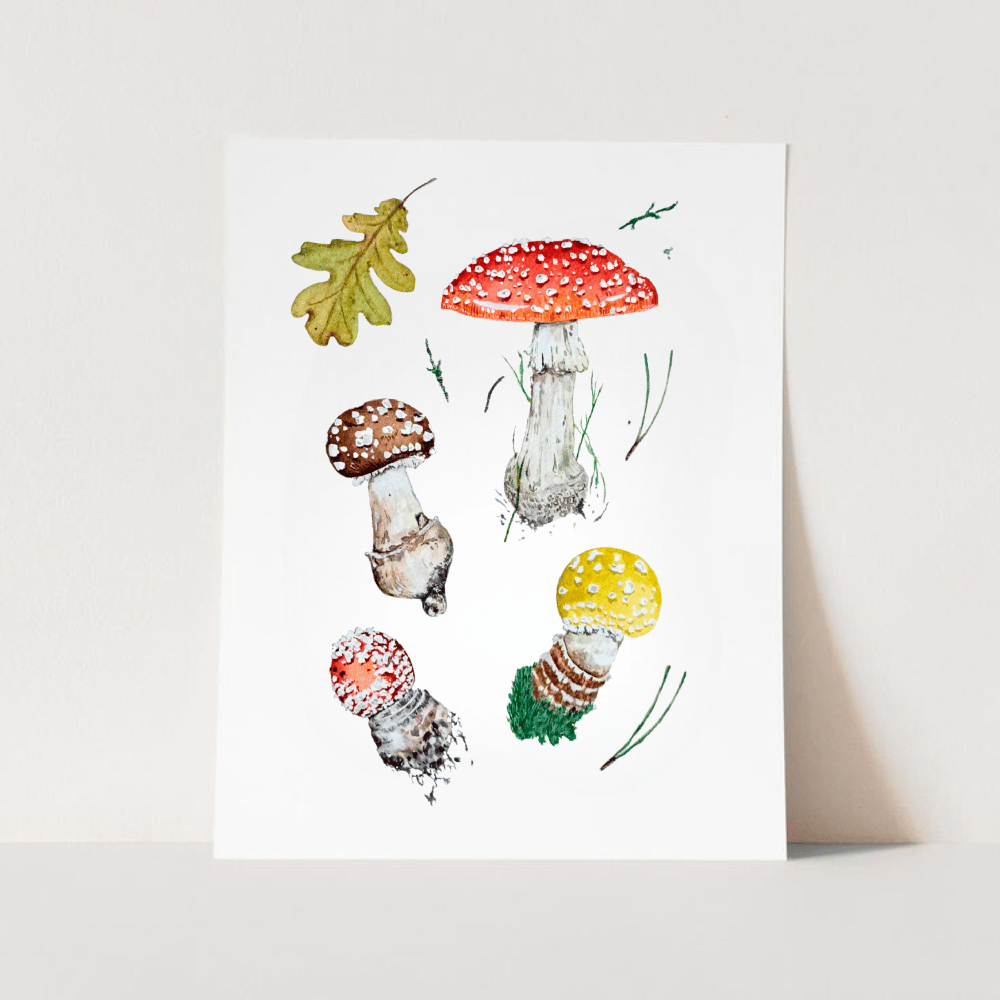 🍄Printed locally on 100% textured white cotton paper with archival inks (for the look & feel of watercolor paper!) I sign each print by hand before shipping so every print has been touched by the artist's hands.