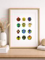 The high-quality print captures the details and nuances of the original watercolor painting, and its bright colors are sure to make a bold statement in any room. Whether you're a nature lover or an art enthusiast, this Cassidinae Beetles watercolor print is sure to dazzle.