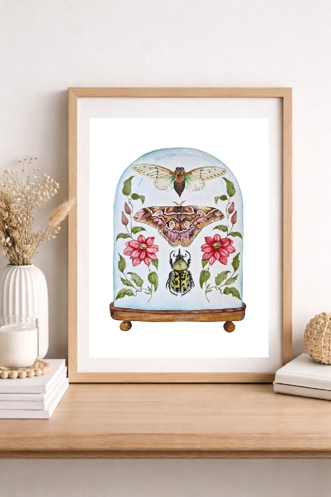 This watercolor would make a lovely addition to the home of any nature lover or bug collector, or anyone with an appreciation for these unique creatures.