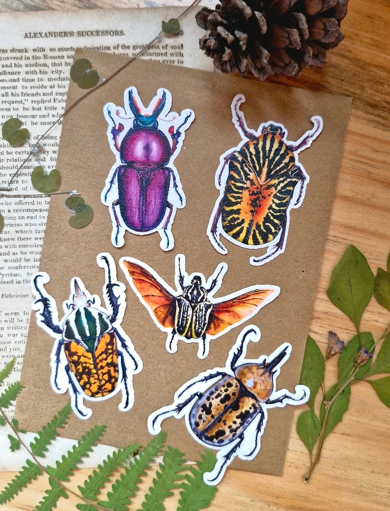 Add a vibrant touch of the wild to your everyday items with this unique beetle sticker set! Featuring 5 hand-illustrated beetles, each design celebrates the beauty of real insect species with bright colors and fine detail. Perfect for decorating laptops, journals, water bottles, or for gifting to fellow entomology lovers.