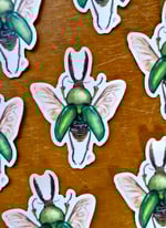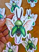 This is a vinyl sticker featuring a Lamprima Adolpinae beetle.