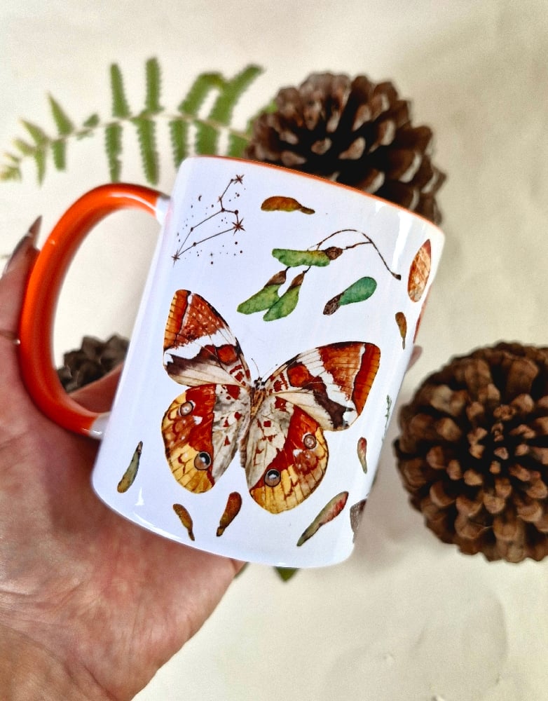 Featuring intricate butterfly and botanical artwork, this ceramic mug is perfect for astrology lovers and makes a thoughtful birthday gift.☕