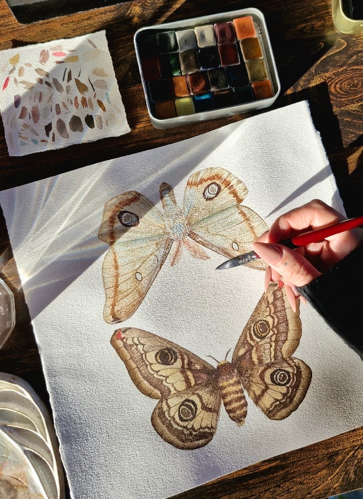 The two moths represent us: one light, one dark — two sides of the same mirror.