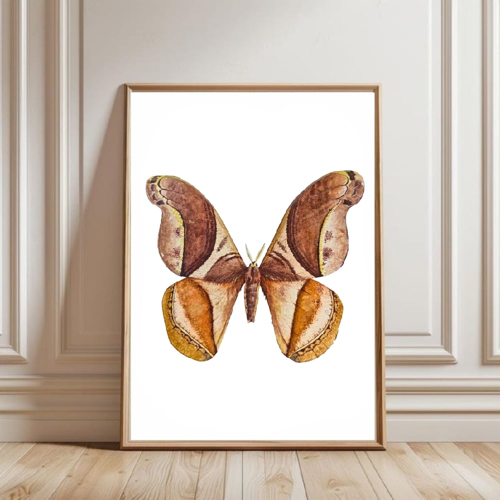 This is a print of my original watercolor painting of a Rhescyntis pseudomartii moth, a type of giant silk moth.
