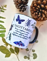 The mug features lots of images of different nature elements representing Sagittarius,