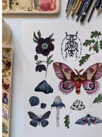 Nassybah Touriño is an illustrator, and amateur naturalist based in Madison WI. Her Watercolor illustrations focus on natural history subjects like taxonomy, biodiversity, and taxidermy, as well as related subjects like astronomy and the ways humans relate to the natural world.