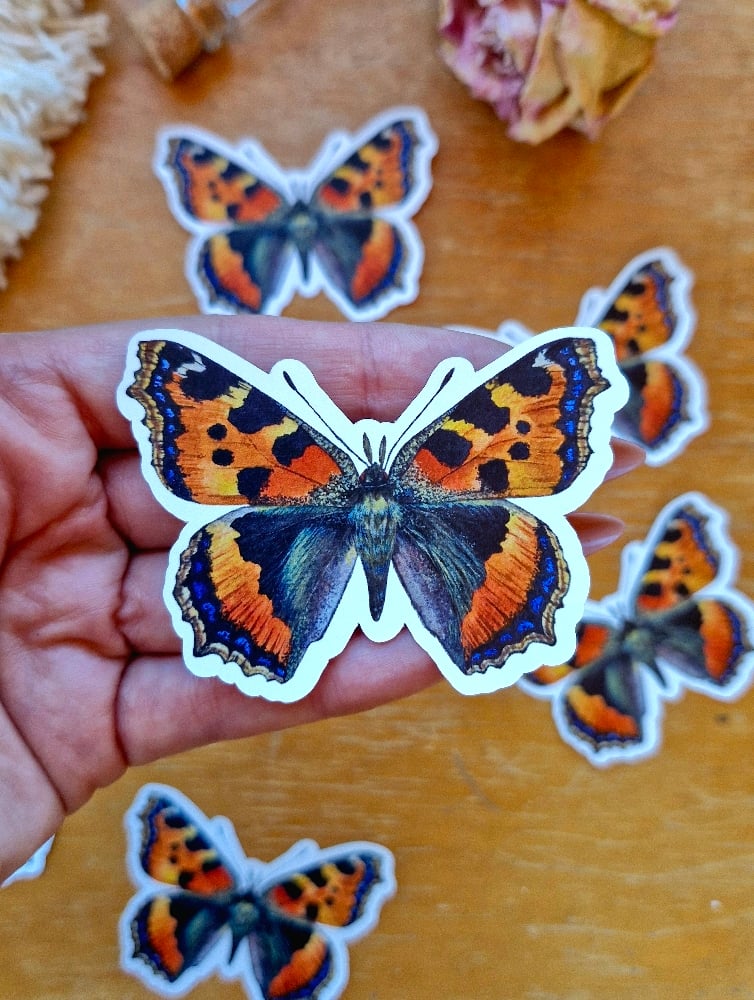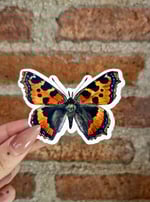 This is a vinyl sticker featuring an Tortoiseshell butterfly.